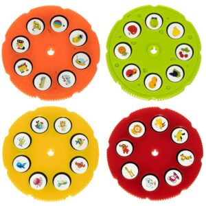 4 BILTU SLĒPES – komplektā ir 4 diski ar 32 attēliem par dažādām tēmām: augļi, transportlīdzekļi, safari dzīvnieki , jūras dzīvnieki. Pateicoties viņiem, mazais sāks mācīties zīmēt, zīmējot līnijas pēc noteikta parauga.