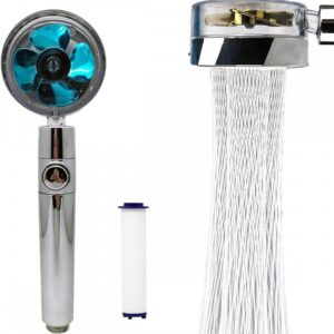Turbo dušas galva vai tehnoloģiski augstas veiktspējas ventilatori palielina ūdens spiedienu. Nerūsējošā tērauda režģis rada maigu ūdens plūsmu vai spa efektu, ļaujot ietaupīt līdz pat 30% ūdens. 360° rotējošā galva ļauj iestatīt ērtu ūdens plūsmas leņķi peldēšanas laikā. Ūdens temperatūru var kontrolēt, izmantojot ieslēgšanas/izslēgšanas pogu. Augstas kvalitātes hroma pārklājumi un izturīgi pret temperatūras ietekmi un koroziju. Viegli tīrāma izliekta konstrukcija. Standarta izmērs der visiem sejas blenderiem.