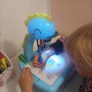 Projektori ar piederumiem noteikti būtu lieliska dāvana ikvienam bērnam, kuram patīk zīmēt. Tam ir galds ar kājām, tāpēc to var novietot uz rakstāmgalda vai citas virsmas. Projektoram ir pievienotas atkārtoti lietojamas kartes, kuras var uzzīmēt ar komplektā iekļautajiem marķieriem un noslaucīt. Projektors vai aksesuāri noteikti būs lieliska dāvana ikvienam bērnam, kuram patīk zīmēt. Tam ir arī kājas, tāpēc to var novietot uz rakstāmgalda vai citas virsmas. Projektors ir aprīkots ar atkārtoti lietojamām kartēm, kuras varat atzīmēt ar komplektā iekļautajiem marķieriem un noslaucīt ar drānu.